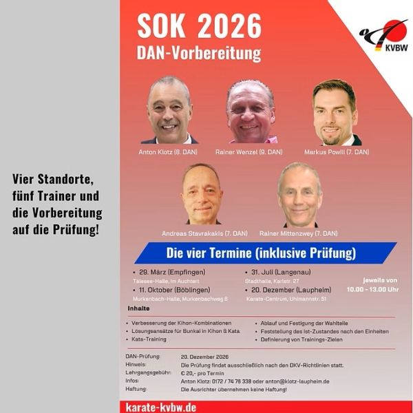 Oder - Wann ist eine Veranstaltung ein Klassiker? - wenn trotz aller rückläufigen Entwicklungen im Vereinssport viele Interessierte kommen - wenn sich fast alle Teilnehmenden begeistert über das bewährte Angebot äußern - wenn sich wieder Trainer aus der näheren Umgebung einfinden und bereit sind, ihr Karatewissen und -können zu teilen Insgesamt 12 Trainingsangebote in 3 verschiedenen Hallenteilen ermöglichen: zusammen kommen, miteinander trainieren, voneinander lernen. Das ist nicht nur ein Slogan ist, sondern genau das wird gelebt. Ganz bewusst werden Angebote, die mit Kampfkunst und verschiedenen Aspekten der Selbstverteidigung, der Körper- und Wahrnehmungsschulung zu tun haben, gemacht.Erfolgreicher Jahresauftakt 2025 der Masters aus der Dojogemeinschaft